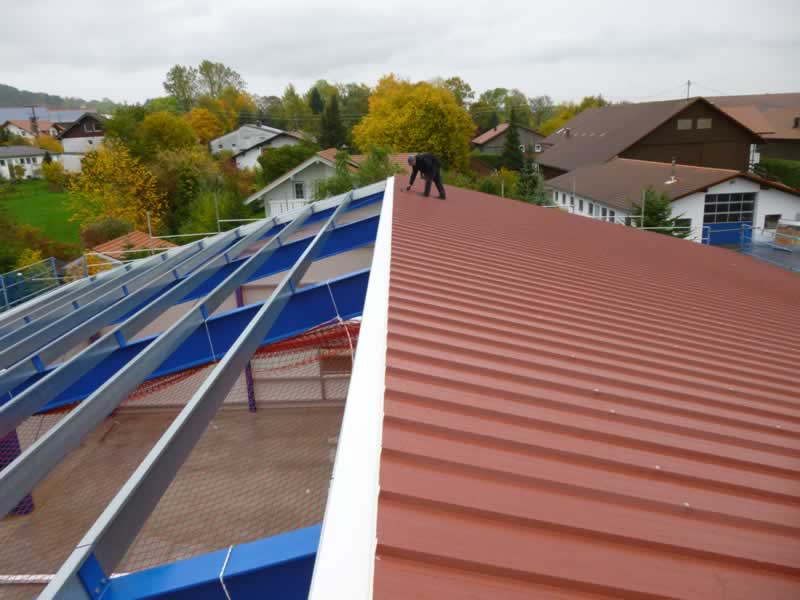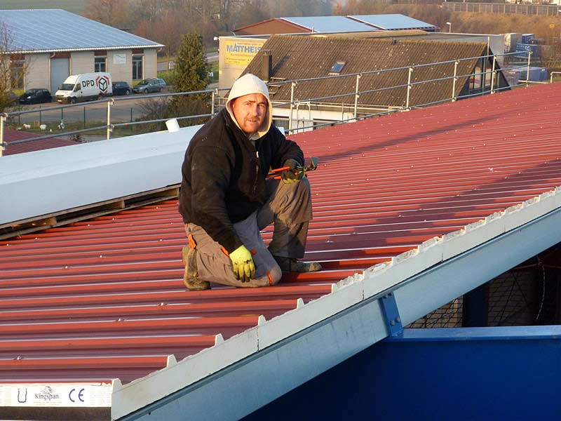 Bei unseren Industrie- und Gewerbedächern setzen wir auf Namhafte Hersteller, mit denen wir eng zusammen arbeiten. Somit verbessern wir stetig Detaillösungen und Montagevorgänge. Mit unserem geschulten Fachpersonal decken wir somit bis zu 1000m² am Tag.Â